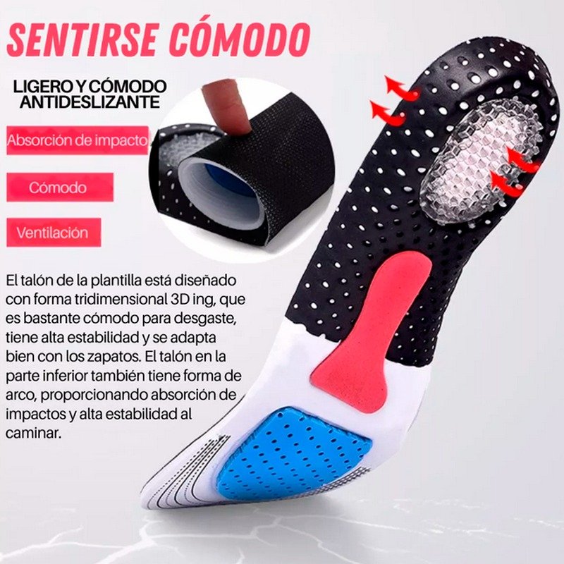 | Dolor en talones o planta del pie | Absorbe impactos y distribuye la presión |